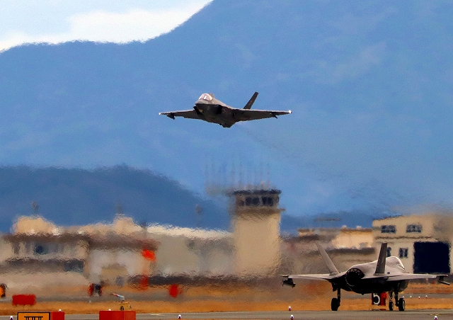 米海兵隊 F-35B ライトニングⅡ 戦闘機(岩国基地)、DT、29番機が離陸 |
