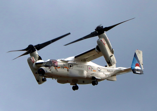 米海軍艦載機 CMV-22B オスプレイ(岩国基地)、73-9460番機が旋回 |