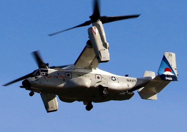 米海軍艦載機 CMV-22B オスプレイ(岩国基地)、73-9460番機が旋回 |
