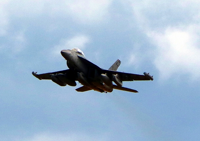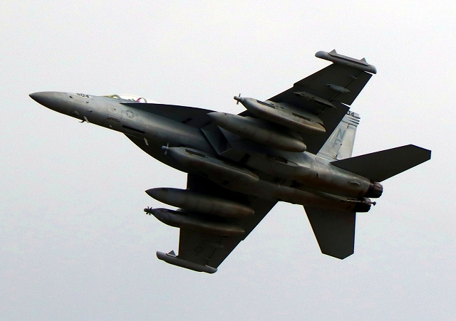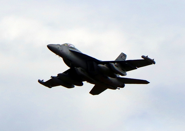 米海軍艦載機 EA-18G グラウラー 電子戦機戦闘攻撃機(岩国基地)、NF、504番機が離陸 |