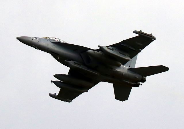 米海軍艦載機 EA-18G グラウラー 電子戦機戦闘攻撃機(岩国基地)、NF、500番機が離陸 |
