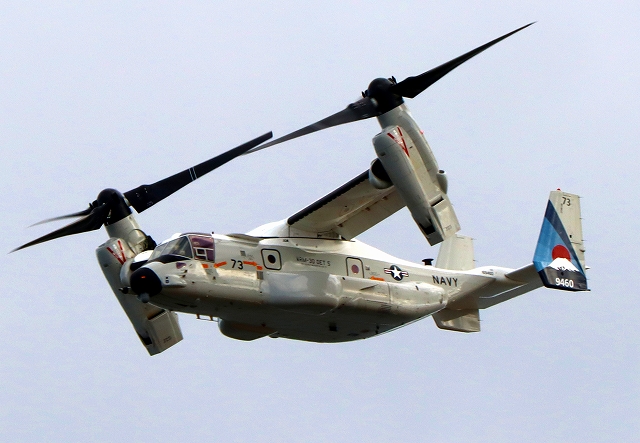米海軍艦載機 CMV-22B オスプレイ(岩国基地)、73-9460番機が旋回 |