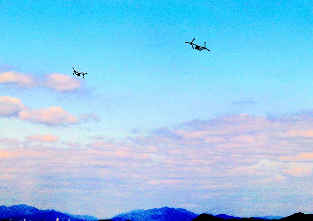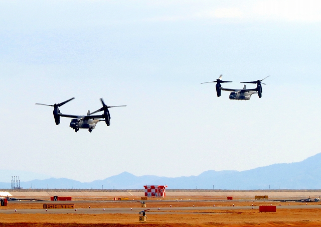 米空軍 CV-22B オスプレイ(横田基地)、USAF 0064番機、0062番機が離陸 |