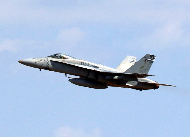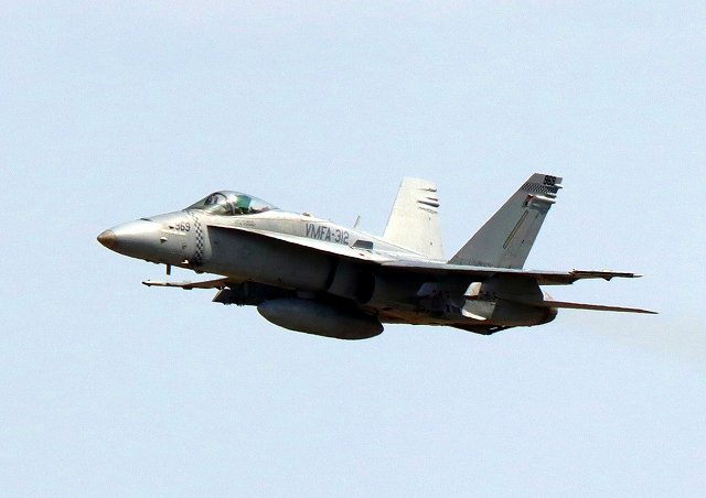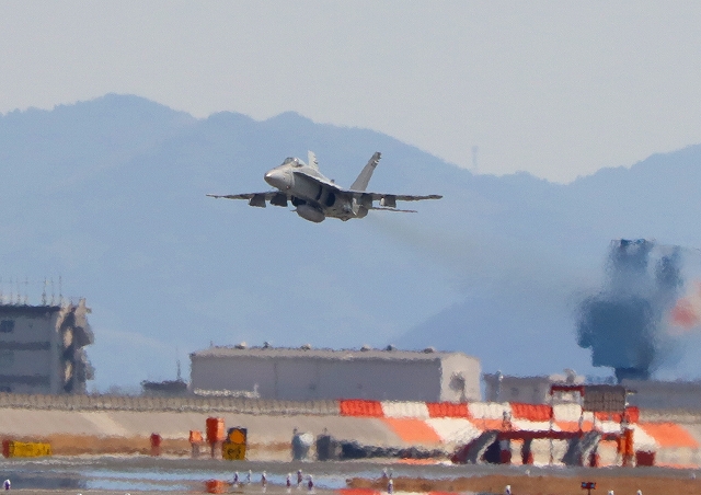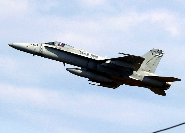 米海兵隊 F/A-18C ホーネット 戦闘攻撃機(岩国基地)、DR、969番機が離陸番機