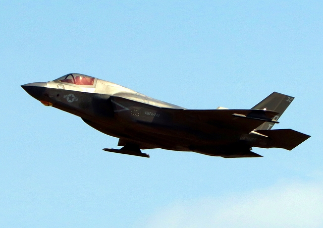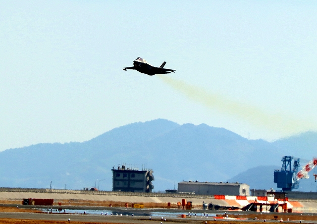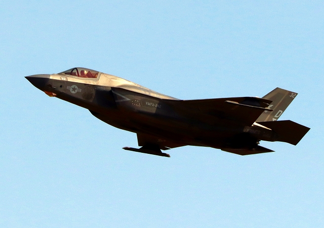 米海兵隊 F-35B ライトニングⅡ 戦闘機(岩国基地)、DT、32番機が離陸 |