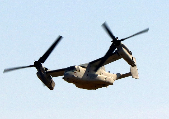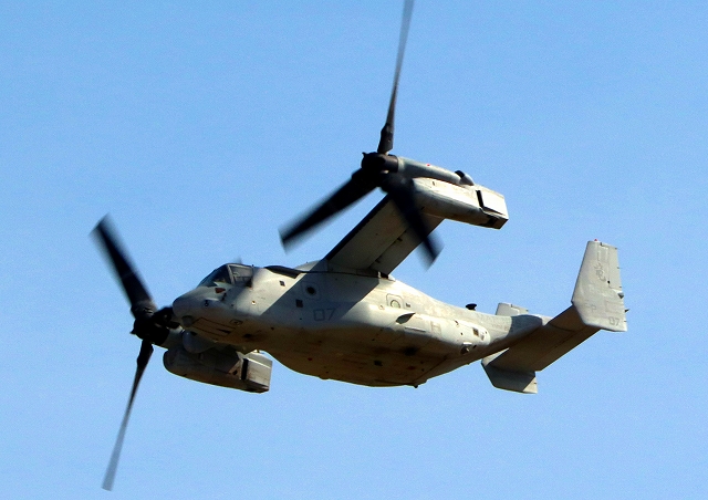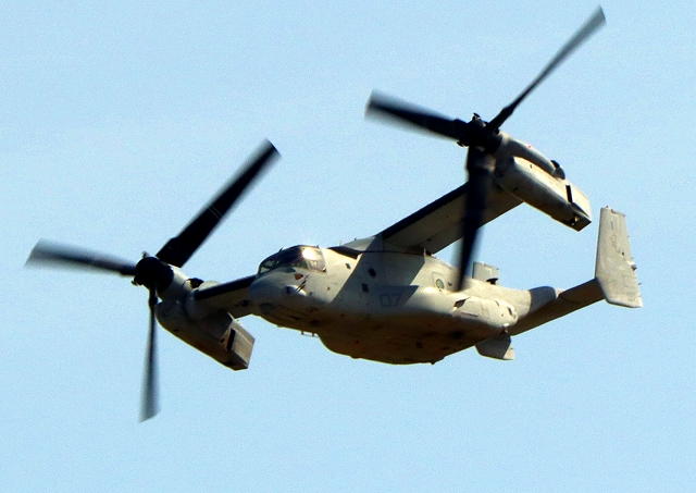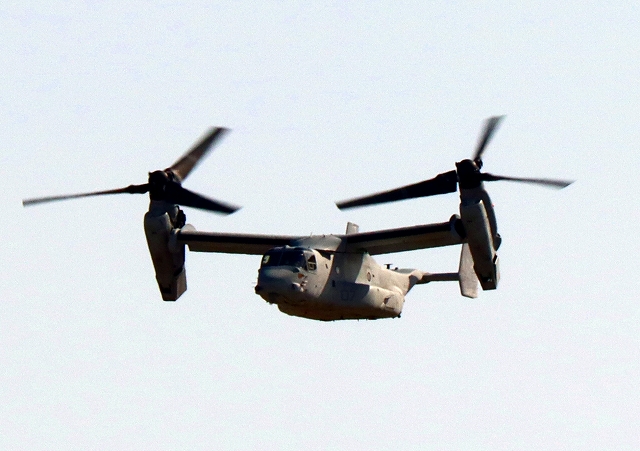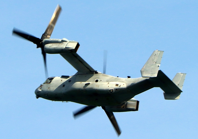 米海兵隊 MV-22B オスプレイ(普天間基地)、「竜」、EP、07番機が離陸 |
