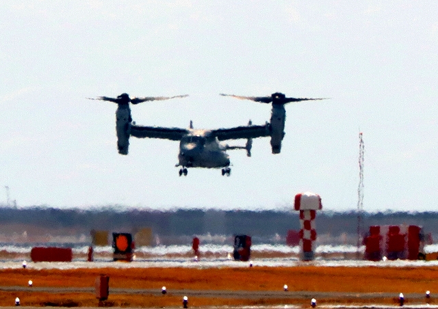 米海兵隊 MV-22B オスプレイ(普天間基地)、8352-02番機が着陸 |