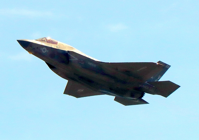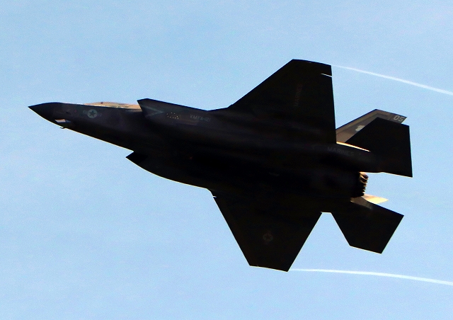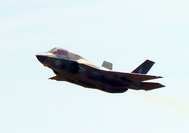 米海兵隊 F-35B ライトニングⅡ 戦闘機(岩国基地)、VK、01番機が離陸 |