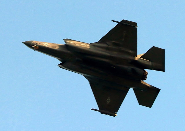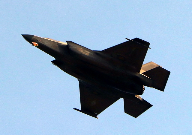 米海兵隊 F-35B ライトニングⅡ 戦闘機(岩国基地)、DT、26番機が帰還、旋回 |