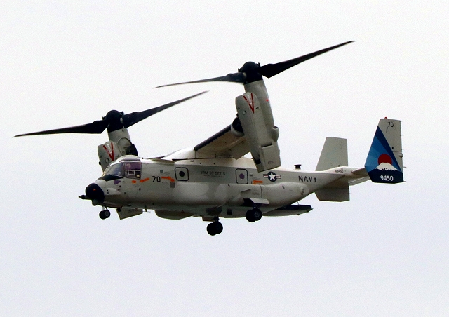 米海軍艦載機 CMV-22B オスプレイ(岩国基地)、70-9450番機が離陸 |