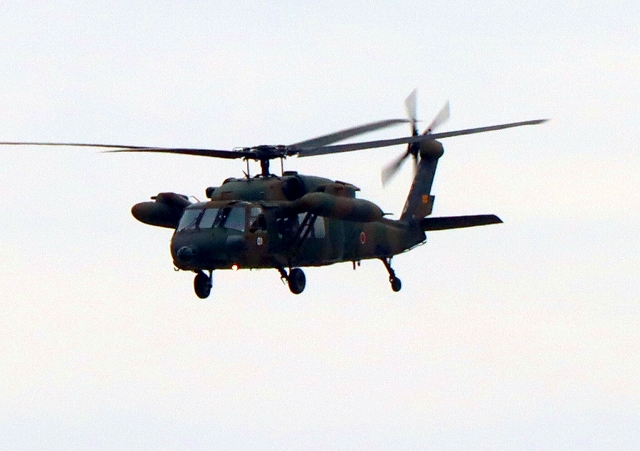 陸上自衛隊 UH-60JA 多用途ヘリが離陸 |