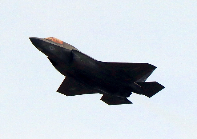 米海兵隊 F-35B ライトニングⅡ 戦闘機(岩国基地)、VK、01番機が離陸 |