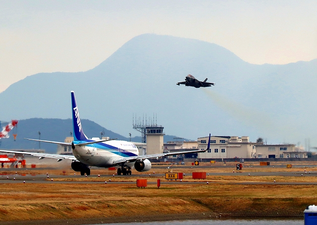 3835-3、2025年3月19日(水)全日空定期便 着陸、UC-12F 軽輸送機 離陸、F-35B ライトニングⅡ 戦闘機 DT 01番機 離陸(21)~(30)