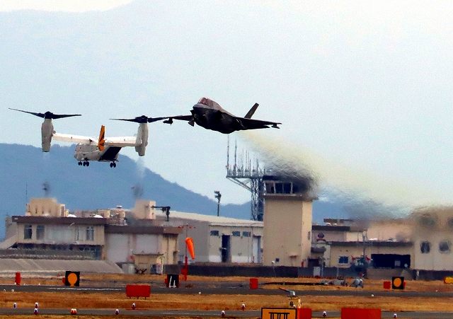 米海兵隊 F-35B ライトニングⅡ 戦闘機(岩国基地)、DT、29番機が離陸 |