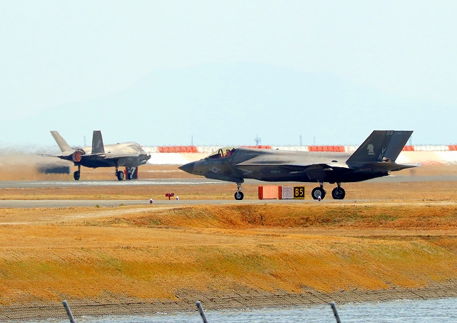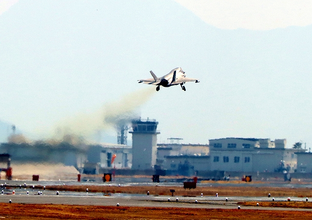 米海兵隊 F-35B ライトニングⅡ 戦闘機(岩国基地)、VK、03番機が離陸 |