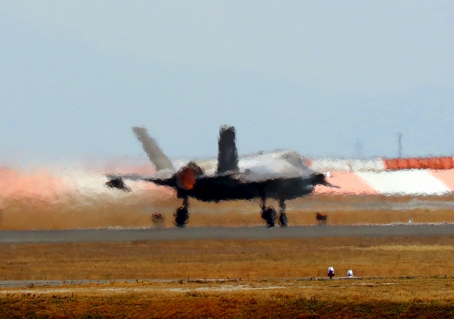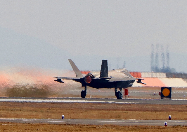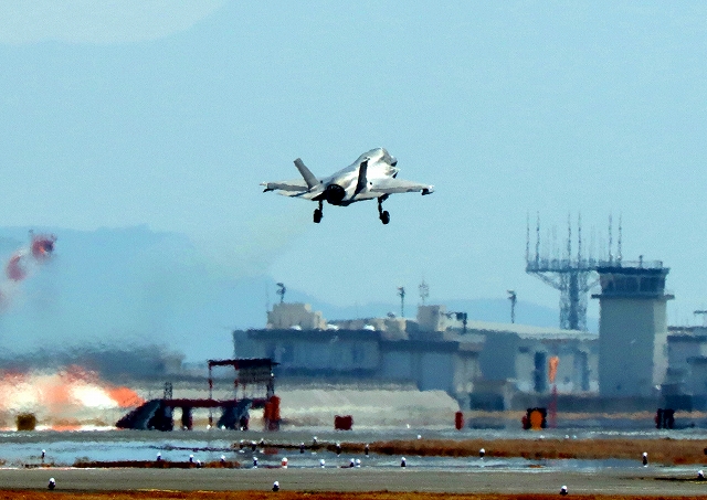 海兵隊 F-35B ライトニングⅡ 戦闘機(岩国基地)、VK、09番機が離陸 |