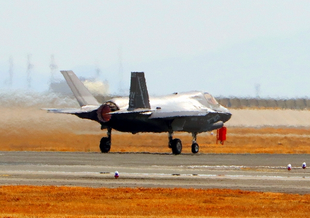 米海兵隊 F-35B ライトニングⅡ 戦闘機(岩国基地)、WE、02番機が離陸 |