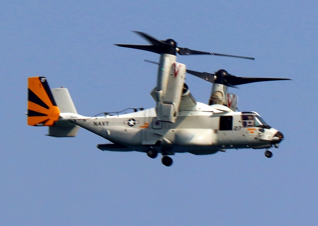 カールビンソン搭載 CMV-22B オスプレイ、27-9440番が旋回(9周目) 旋回回数は、撮った写真での回数です。 |