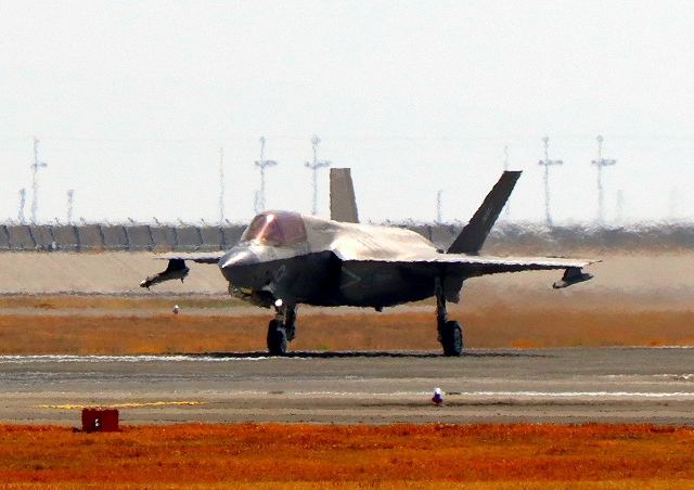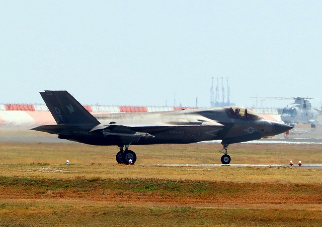 米海兵隊 F-35B ライトニングⅡ 戦闘機(岩国基地)、DT、22番機が着陸 |