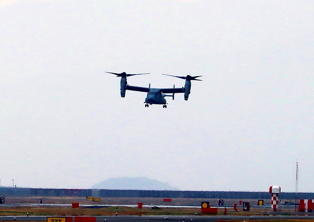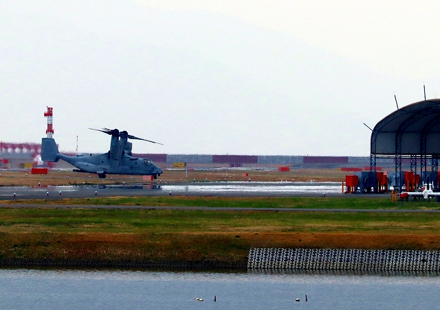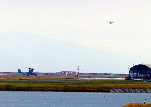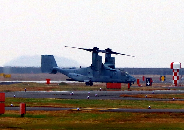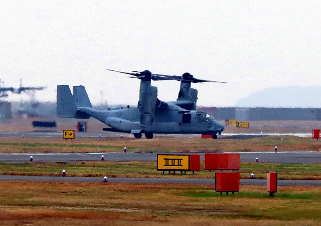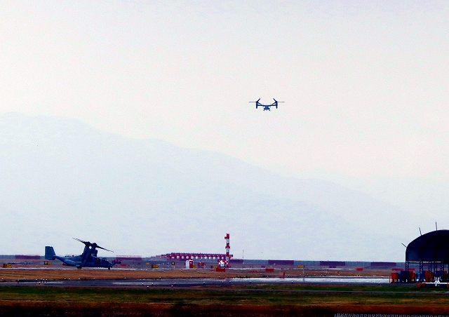 米海兵隊 MV-22B オスプレイ(普天間基地)、04番機が飛来 |