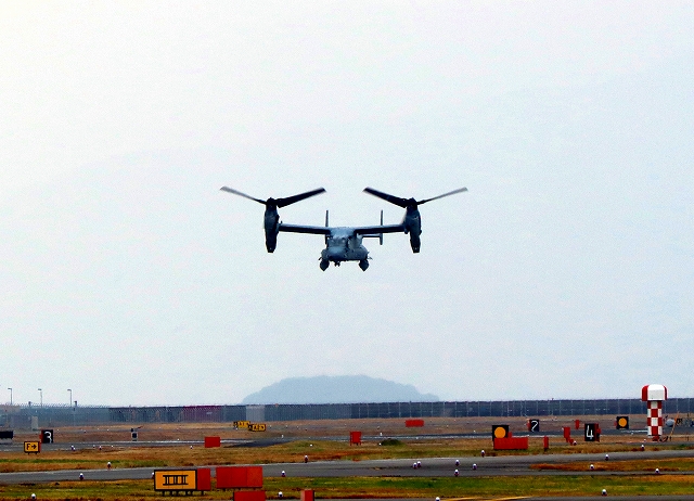 米海兵隊 MV-22B オスプレイ(普天間基地)、09番機が離陸