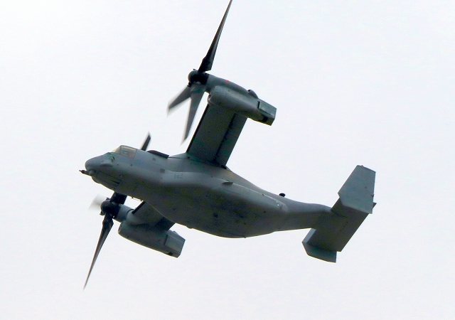 米海兵隊 MV-22B オスプレイ(普天間基地)、12番機が離陸 |