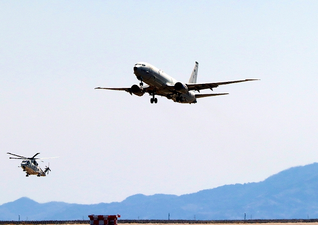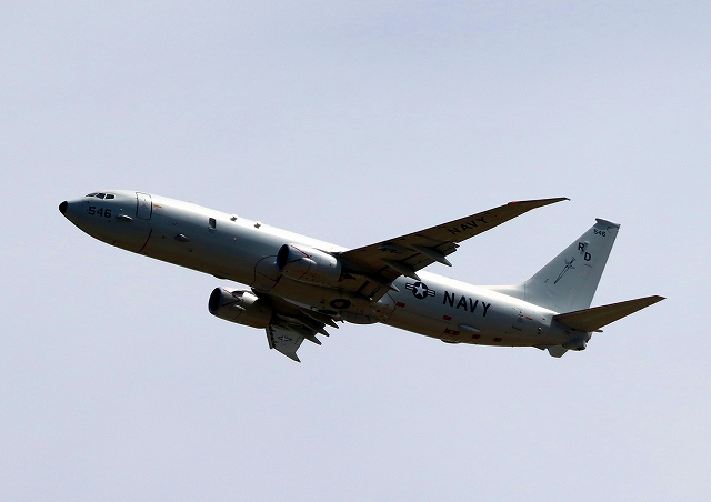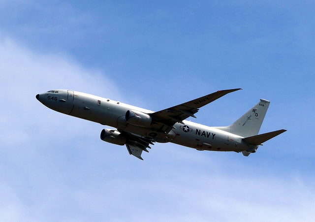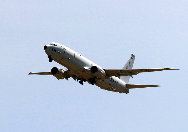 米海軍 P-8A 海上哨戒機 ポセイドン(嘉手納基地、三沢基地)、RD、546番機が旋回 |