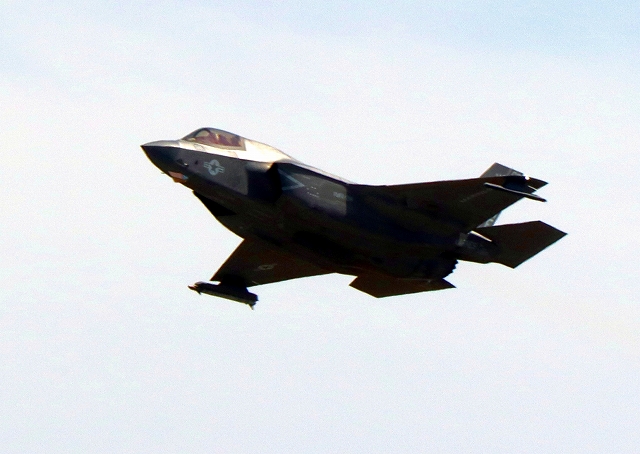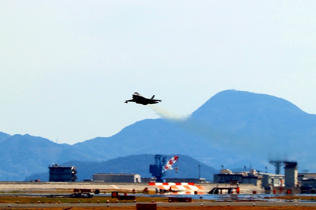 米海兵隊 F-35B ライトニングⅡ 戦闘機(岩国基地)、WE、02番機が離陸 |