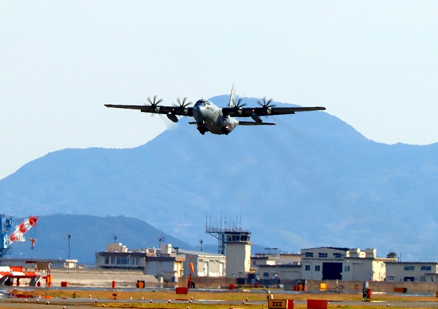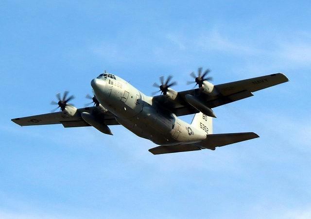 米海兵隊 KC-130J 空中給油機 スーパーハーキュリーズ(米本土海兵隊基地)、BD 5352番機が離陸 |