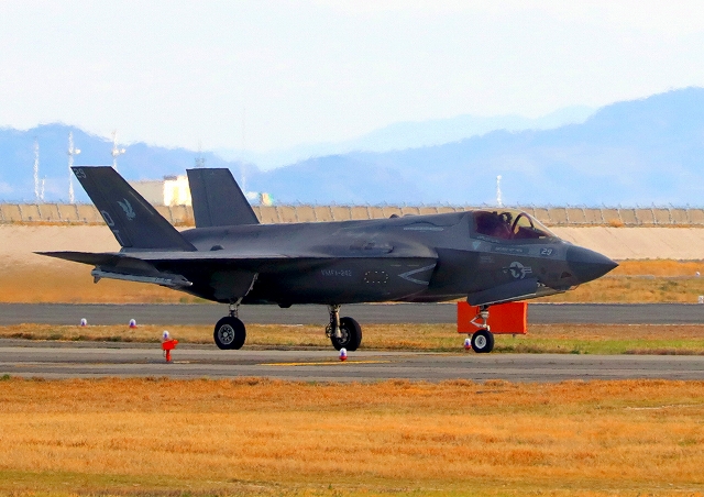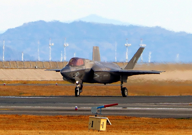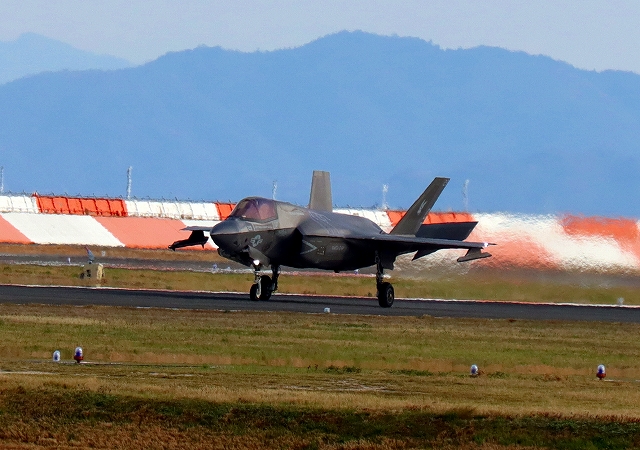 米海兵隊 F-35B ライトニングⅡ 戦闘機(岩国基地)、DT、29番機が着陸 |