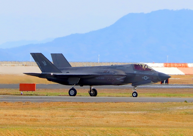米海兵隊 F-35B ライトニングⅡ 戦闘機(岩国基地)、DT、27番機が着陸 |