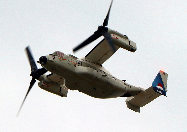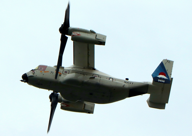 米海軍艦載機 CMV-22B オスプレイ(岩国基地)、71-9456番機が旋回(1周目) |
