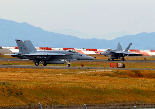 米海軍艦載機 F/A-18E スーパーホーネット 戦闘攻撃機(岩国基地)、NF、204番機、205番機 |