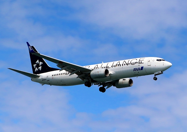 3843-1、2025年4月2日(水)全日空旅客機定期便が着陸、スーパーホーネット 戦闘攻撃機 E 204番機、205番機 2機編隊で帰還(1)~(10)