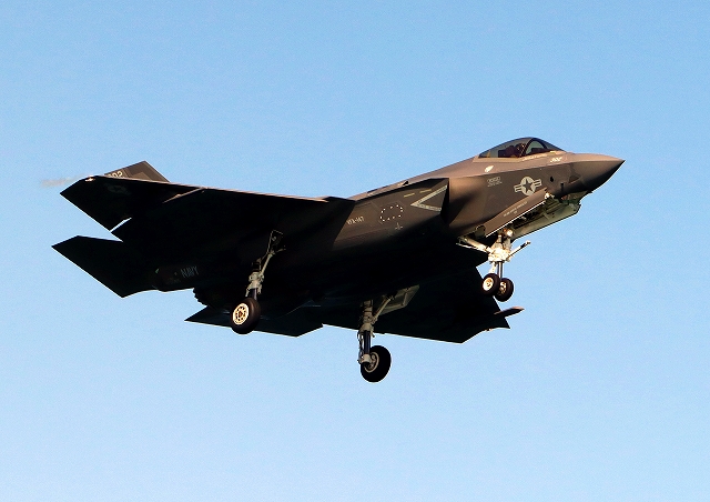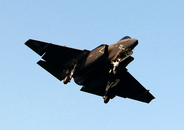 米海軍艦載機 F-35C ライトニングⅡ 戦闘機(岩国基地)、NF、312番機が着陸 |