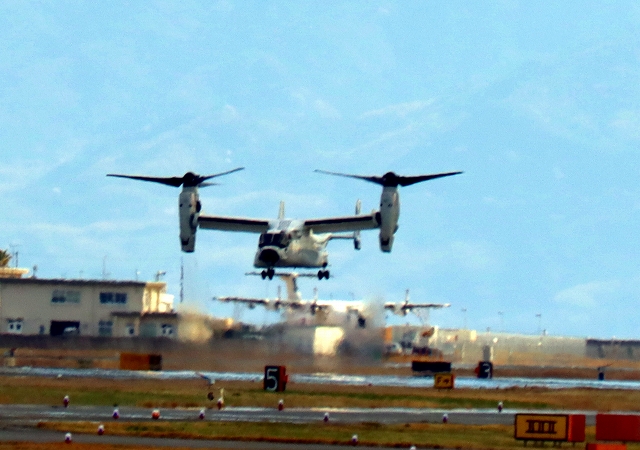 米海軍艦載機 CMV-22B オスプレイ(岩国基地)、73-9460番機が着陸。 |