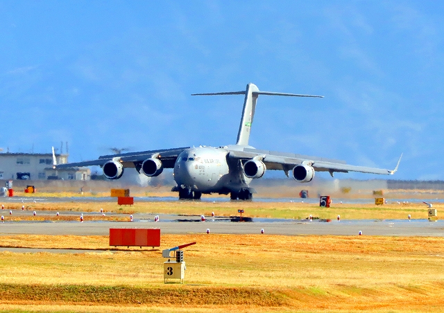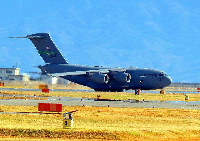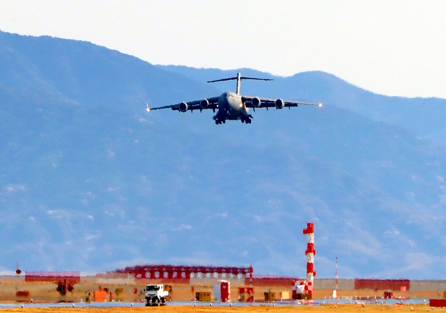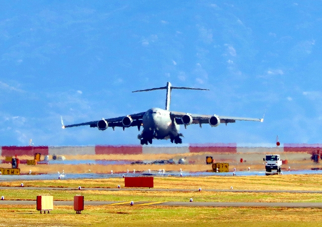 米空軍 大型ジェット輸送機 C-17A グローブマスターⅢ AMC 00-8202番機が飛来 |