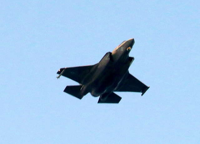 3845-2、2025年4月4日(金)F-35B ライトニングⅡ 戦闘機 WE 05番機が帰還、旋回、着陸(11)~(20)