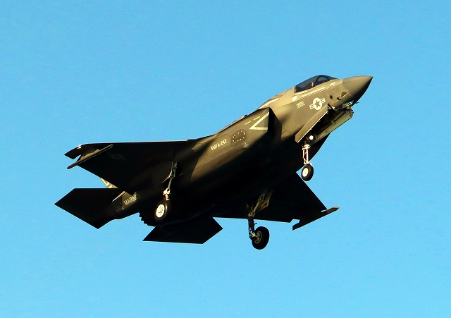 米海兵隊 F-35B ライトニングⅡ 戦闘機(岩国基地)、DT、22番機が着陸 |