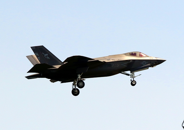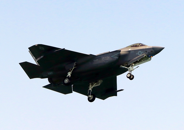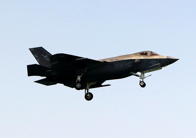 米海軍艦載機 F-35C ライトニングⅡ 戦闘機(岩国基地)、NF、301番機が着陸 |