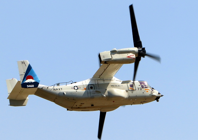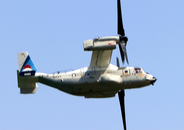 米海軍艦載機 CMV-22B オスプレイ(岩国基地)、73-9460番機が旋回 |