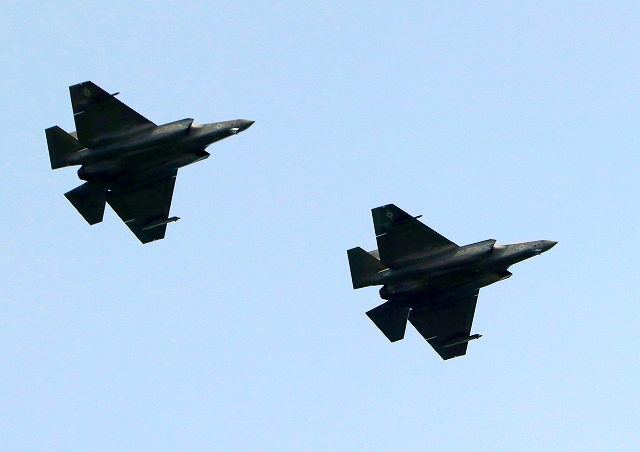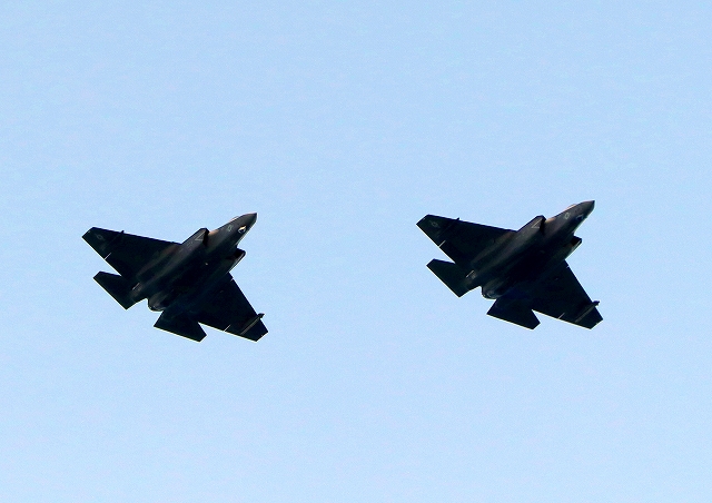 米海軍艦載機 F-35C ライトニングⅡ 戦闘機(岩国基地)、NF、300番機、304番機が2機編隊で帰還 |