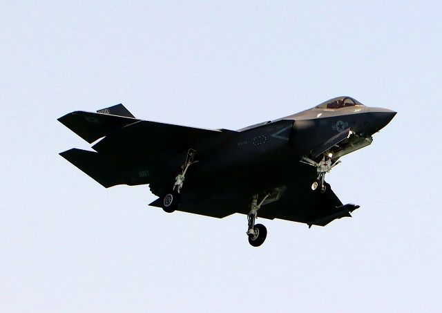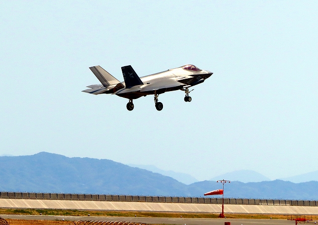 米海軍艦載機 F-35C ライトニングⅡ 戦闘機(岩国基地)、NF、300番機が着陸 |