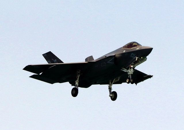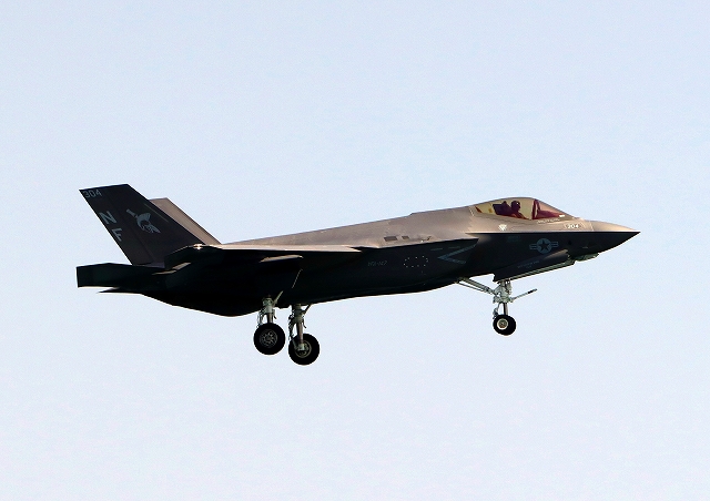 米海軍艦載機 F-35C ライトニングⅡ 戦闘機(岩国基地)、NF、304番機が着陸 |