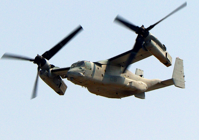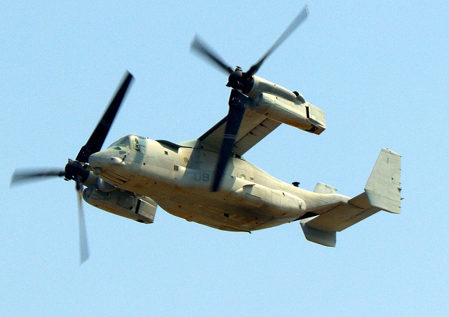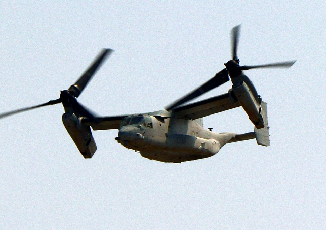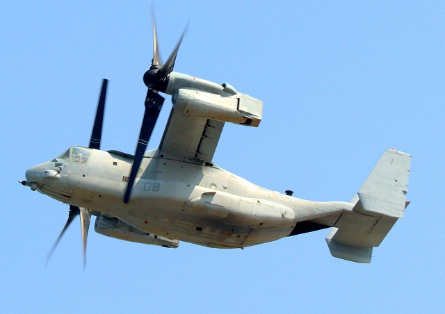 米海兵隊 MV-22B オスプレイ(普天間基地)、「虎」ET08番機が離陸 |