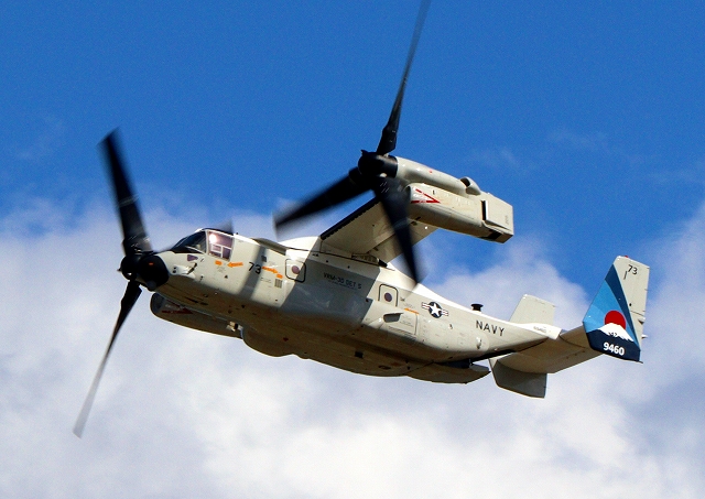 米海軍艦載機 CMV-22B オスプレイ(岩国基地)、73-9460番機が旋回 |