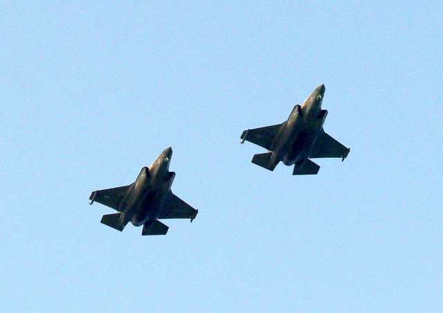 米海兵隊 F-35B ライトニングⅡ 戦闘機(岩国基地)、DT、21番機、VK、05番機が2機編隊で帰還 |