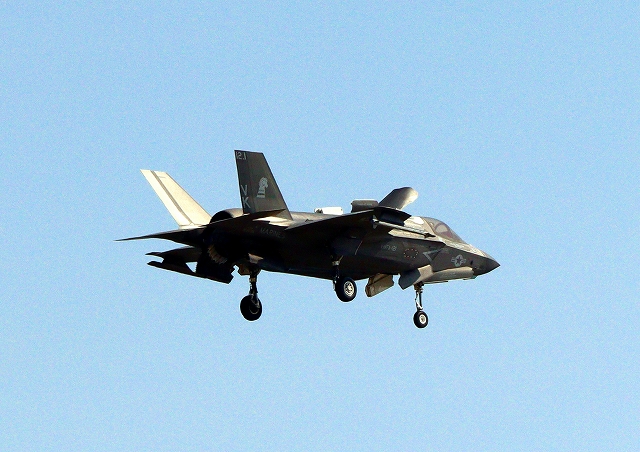 米海兵隊 F-35B ライトニングⅡ 戦闘機(岩国基地)、DT、21番機が着陸 |