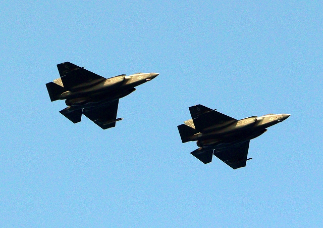 米海軍艦載機 F-35C ライトニングⅡ 戦闘機(岩国基地)、NF、300番機、302番機が2機編隊で帰還 |