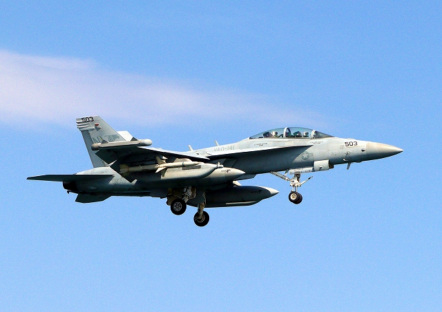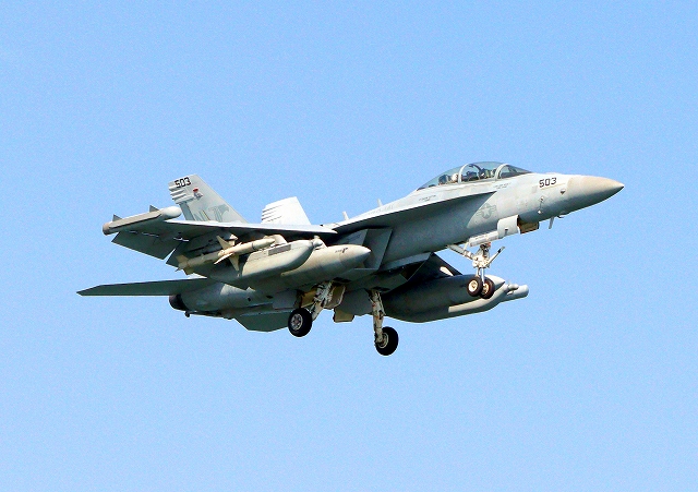 米海軍艦載機 EA-18G グラウラー 電子戦機戦闘攻撃機(岩国基地)、NF、503番機が帰還 |